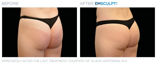 Glutes are another super popular area for us to treat, especially in women. Women with flatter buttocks often desire more āliftā in their rear end. Emsculpt in Bellevue can provide amazing results⦠clients simply lay flat on their stomachs (buttocks up). We place the applicators and start treatment. Contractions will tense your rear muscles like you may have never felt before. Getting such an intense glute workout would be nearly impossible at the gym. Within 3 months you will notice your toning results: more firm, lifted and shapely buttocks.