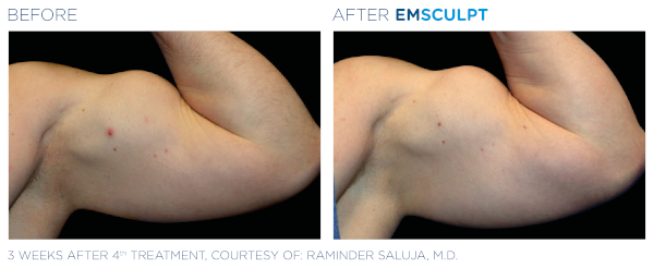 Smaller muscles like biceps and triceps can get great muscle definition from Emsculpt NEO. Check out these results (below).
